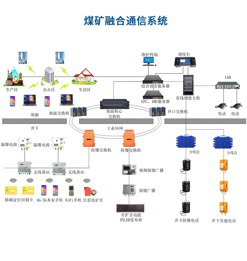 煤礦融合通信系統是煤礦井下安全避險“六大系統”的重要組成部分。煤礦融合通信系統作為當下新一代熱門信息技術契合煤礦智能化發展需求,為解決好煤礦井上下的通訊問題提供了全新方案,為我國智能煤礦的建設注入了新動力和新活力。煤礦融合通信聯絡系統實現融合通信系統與人員定位系統、安全監控系統和生產自動化系統的聯動控制,可以根據人員實時軌跡,實現安全預警和報警以及環境監測等功能,確保井下現場人員的安全。