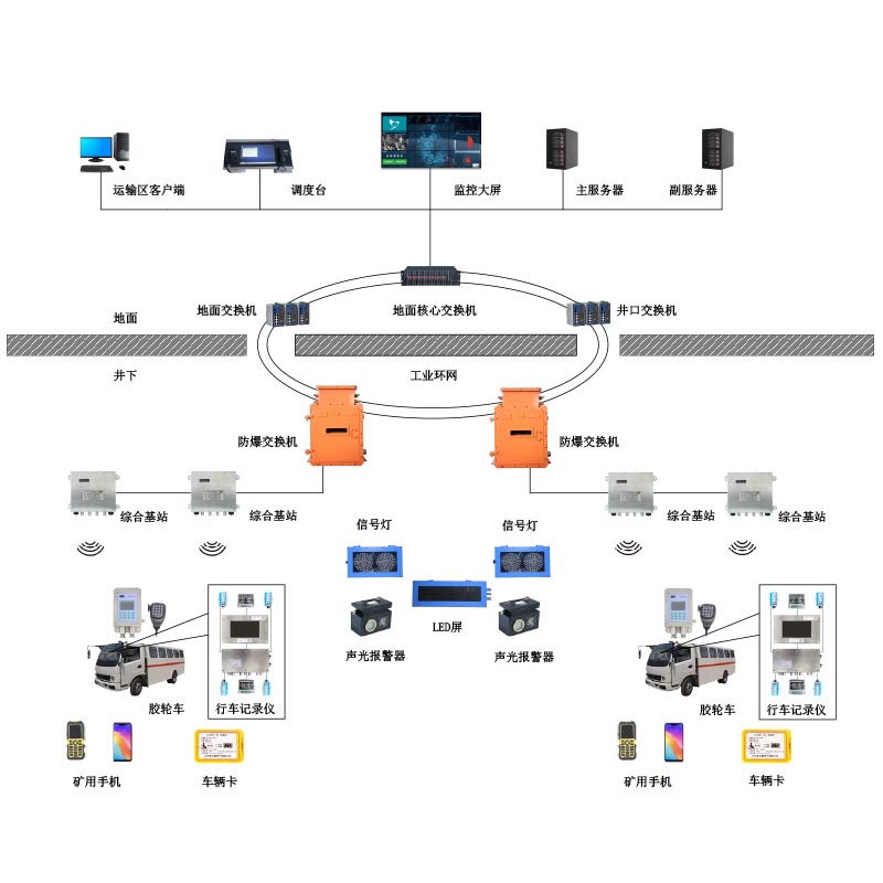 ◆為了更好地實現對膠輪車進行調度,可增加WIFI、4G、5G無線語音通信系統與無軌膠輪車運輸監控系統配合使用,可以實現語音通信系統與運輸監控系統通信干線網絡共用,有效節約了礦方投資成本。